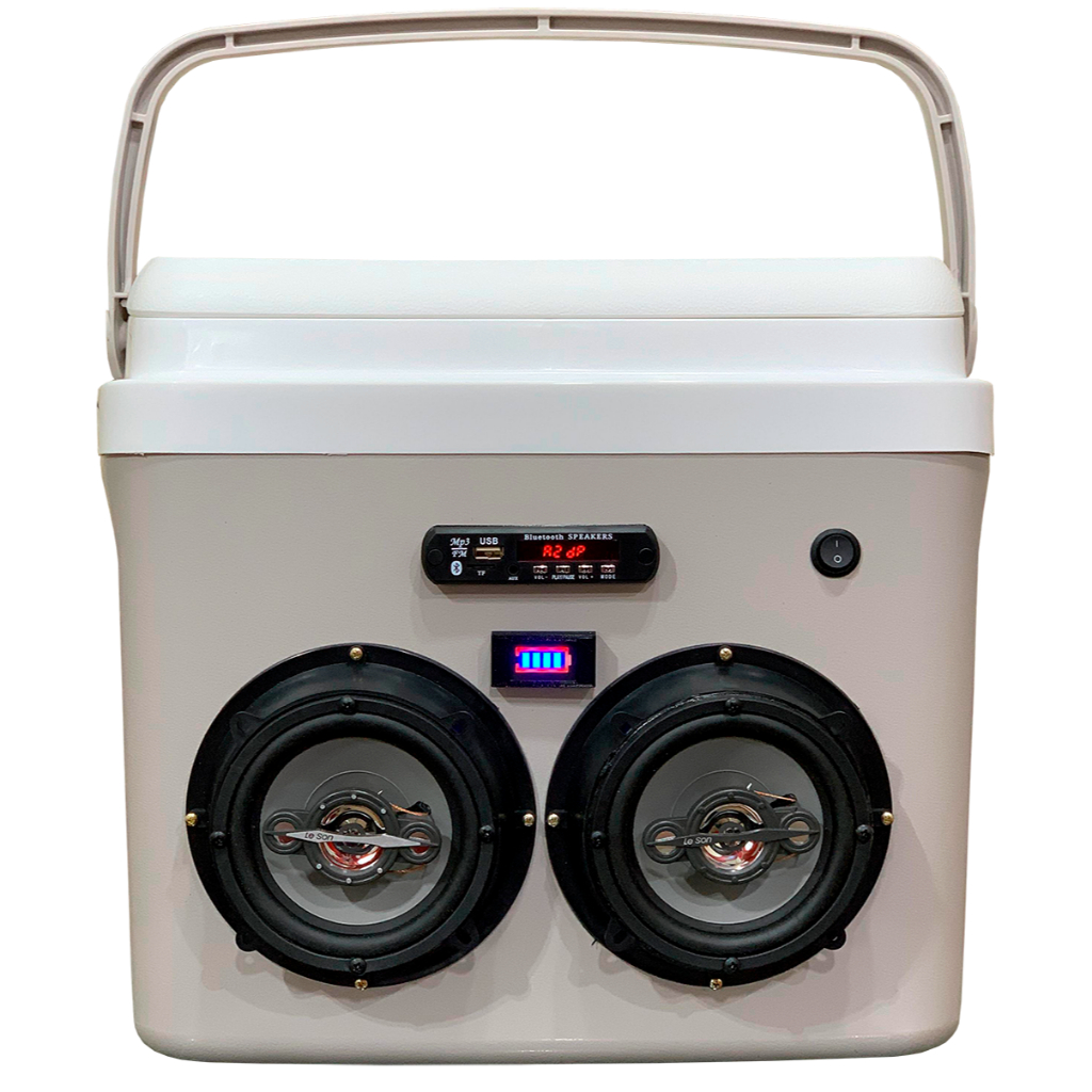 Caixa Térmica Cooler Premium 32L com Sistema de Som Integrado Acompanha a caixa: - Caixa termica 32 Litros - Placa Bluetooth Usb - Amplificador - Carregador 12v (110/220) - Alto Falante de 5 Polegadas 100w - Voltimetro - Botao liga desliga - Baterias - Controle Remoto Capacidade Generosa e Portátil: Com capacidade de 32 litros, este cooler armazena até 50 latas de 350 ml, perfeito para animar festas, encontros, ou qualquer evento ao ar livre. Som de Qualidade Integrado: Equipado com alto-falante de alta qualidade, amplificador embutido e conectividade completa (Bluetooth, USB e rádio FM), este cooler é muito mais que uma caixa térmica – ele é um centro de entretenimento portátil para você levar onde quiser. Autonomia de Bateria de Até 3 Horas: Alimentado por baterias recarregáveis que oferecem até 3 horas de reprodução contínua, ideal para garantir o clima animado da sua festa na praia, piscina ou camping. Manuseio e Transporte Confortável: Alça reforçada e ergonômica que facilita o transporte, mesmo com carga máxima. Isolamento Térmico Eficiente: Equipado com isolamento de qualidade, mantém suas bebidas e alimentos na temperatura ideal por mais tempo, garantindo frescor em qualquer ambiente. Robustez e Facilidade de Limpeza: Com design durável e vedação de alta qualidade, esta caixa resiste a impactos e previne vazamentos. O revestimento interno é anti-manchas e fácil de limpar, perfeito para manter sua caixa sempre impecável. Recomendações de Uso: Ideal para festas, dias na praia, churrascos e atividades ao ar livre. Transforme qualquer ambiente em uma verdadeira festa com a Caixa Térmica Cooler Premium – mantendo suas bebidas geladas e a música sempre no clima! Dica Extra: Para otimizar a eficiência térmica, utilize gelo picado ou packs de gelo e pré-resfrie as bebidas. Não molhe a caixa pelo lado externo! ATENÇÃO! Pode colocar gelo e as suas bebidas favoritas dentro da caixa térmica sem problemas! OBSERVAÇÕES IMPORTANTES: Não molhar a parte externa. Os equipamentos eletrônicos, como rádio, alto-falantes, plugs, etc., não são à prova d'água. LIMPEZA: Para limpar ou lustrar, utilize um pano úmido com água ou silicone em gel. ----------------------------------------- Caixa Preta - Falante Orion 5 Caixa Vermelha - Falante Bravox 5 Caixa Azul - Falante Hurricane 5 Caixa Bege - Falante Leson 5