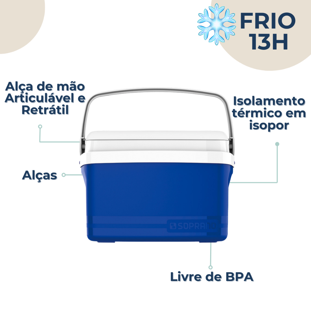 SOBRE O PRODUTO Caixa térmica ideal para reunião de família e amigos, seja na praia, no churrasco em casa, ou ao ar livre em alguma aventura. Seu tamanho compacto a torna fácil de carregar. DIFERENCIAIS DO PRODUTO - Alça de mão retrátil - Tampa com trava - Isolamento térmico de EPS - Livre de Bisfenol (BPA Free) - Alça lateral embutida, mais fácil de transportar Capacidade (sem gelo) - Latas de 350 ml - 18 unidades ou - Latas de 473 ml - 12 unidades Mantém gelado por até: 13 horas (Considerando 20% da capacidade em gelo) ESPECIFICAÇÕES TÉCNICAS - Dimensões do produto: 34,4 x 23,4 x 26,8cm - Dimensões internas do produto: 29,3x22,8x20,7cm - Peso: 1,1430kg - Garantia: 90 dias contra defeitos de fabricação