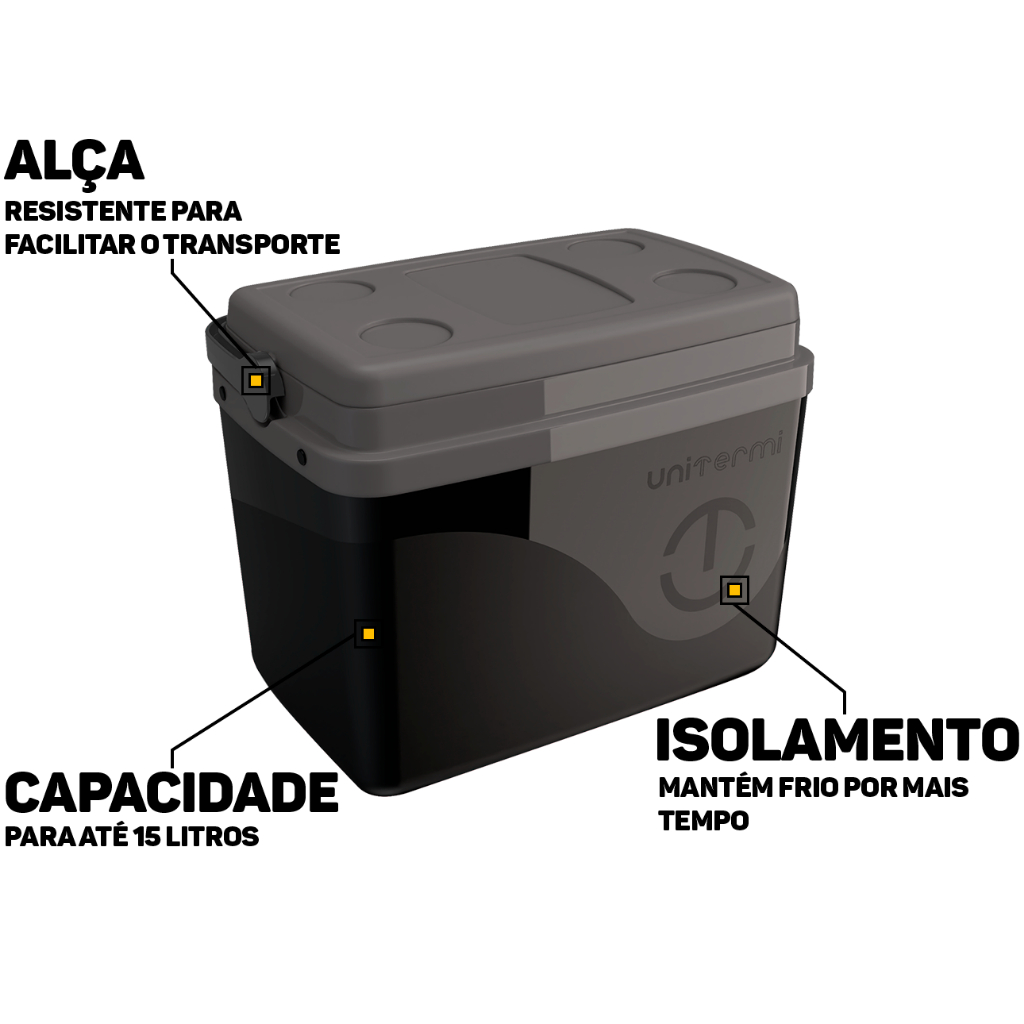 Caixa Térmica 15 Litros Floripa Unitermi Imagine ter sempre à mão a solução perfeita para manter seus alimentos e bebidas fresquinhos, não importa onde você esteja. A Caixa Térmica 30 Litros Floripa da Unitermi será sua companheira ideal para aventuras ao ar livre e momentos especiais. Atenda às suas necessidades com grande estilo! Características: > Capacidade para 15 litros; > Tampa bandeja e porta copos; > Resistente e garante bom isolamento térmico. Especificações Técnicas: > Material: isolamento em EPS e demais peças em plástico; > Dimensões do Produto (C x L x A): 38,4cm x 23,4cm x 27,7cm. - Marca: Unitermi - Garantia: 12 meses contra defeitos de fabricação
