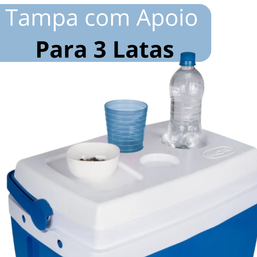 Para acompanhar seu dia na praia, camping ou até mesmo garantir as bebidas geladas e os lanchinhos em longas viagens, a Caixa Térmica da Mor é item indispensável! As Caixas Térmicas Mor possuem parte interna e externa em polipropileno injetado, tampa soprada e contam com isolamento em isopor. Sua tampa possui design que permite apoiar 3 latinhas e outros objetos na parte superior. Para facilitar o transporte, possui uma alça prática para você carregar sempre que desejar garantir as bebidas geladinhas para a reunião com amigos ou familiares. Disponíveis nos tamanhos: 12L - 13 Latas 18L - 24 Latas 34L - 50 Latas