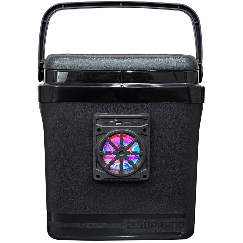 Caixa Termica Cooler Tampa Alça Som Bluetooth Usb Fm Led Rgb Portátil Bateria Carregador