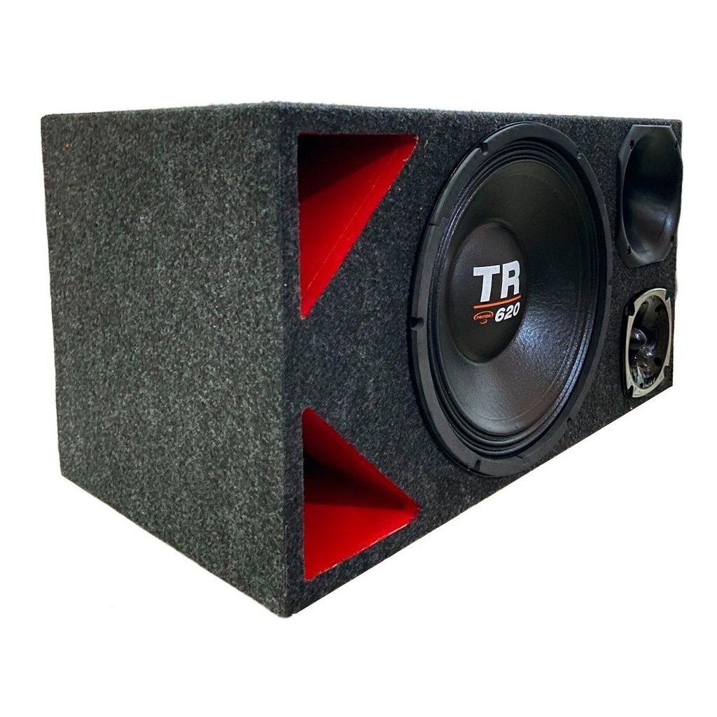 Caixa Trio Som Automotivo 12 Polegadas Triton Tr 620 4 Ohms Duto Triangular Driver Tweeter 150w + Módulo Taramps Ds 800x4 2 OhmsÍTENS QUE ACOMPANHAM O PRODUTO:- 01 CAIXA PERSONALIZADA EM MDF15 DUTO TRIANGULAR- 01 DRIVER 150 W RMS- 01 TWEETER 150 W RMS- 01 ALTO FALANTE 12 POLEGADAS TRITON TR 620 4 OHMS- 01 MÓDULO TARAMPS DS 800X4 2 OHMSMEDIDAS DA CAIXA:Comprimento: 60CmAltura: 33CmLargura: 32CmDESCRIÇÃO:Alto Falante Woofer 12 Polegadas Triton 620 Rms TR620 4 OhmsCom a chegada do mais novo woofer TR620, de 12 polegadas você vai curtir um som muito mais pesado com a mais alta qualidade das frequências grave e médio grave. O TR620 foi pensado e projetado através da mais recente tecnologia do mercado e com a ajuda dos melhores profissionais da área.Especificações técnicas Woofer Triton TR620Diâmetro nominal: 12 polegadasResposta em frequência: 57 a 5.000 HzImpedância nominal: 4 OhmsPotência de pico: 1.240 WPotência nominal RMS: 620W?o (referencial de eficiência): 1,47 %Densidade de fluxo no gap: 9.600 GaussAltura de gap: 9,0 mmPeso: 7.200 KGBobinaMaterial do fio: CCAWSeção do fio: RedondoAltura: 18 mmDiâmetro: 4”Carcaça e ImãMaterial da carcaça: Chapa de AçoMaterial do imã: FerriteDimensão do imã: 169 x 24 mmO DS 800×4 é um módulo amplificador multicanal da Taramps.Full Range, ele é compatível os mais variados tipos de alto-falantes.Isso significa que pode ser utilizado para amplificar subgraves, graves, médio-graves, médios, médio-agudos e agudos.São 4 canais de 200 WRMS, com potência máxima de 800 Watts RMS, com possibilidade de ligações em Bridge.Extremamente versátil, ele possui entradas de áudio via RCA (sistema tradicional) e também entradas de áudio via Fio com acionamento automático por áudio, ideal para players e multimídias originais.Versatilidade, eficiência e qualidade em um único produto Taramps.Especificação Técnica:Modelo: 2 OHMSNúmero de Canais: 02Potência Máx. @ 12,6 VDC - 2 OHMS: 800W RMS (4 x 200W RMS)Potência Máx. @ 12,6 VDC - 4 OHMS: 500W RMS (4 x 125W RMS)Potência Máx. @ 12,6 VDC - 8 OHMS: 240W RMS (4 x 60W RMS)Configurações @ 12,6 VDC:4 Canais: 4 x 200W RMS3 Canais: 2 x 200W RMS + 1 x 400W RMS - 4 OHMS Bridged2 Canais: 2 x 400W RMS - 4 OHMS BridgedSensibilidade de Entrada: 230mV (Com level a 100%)Distorção Harmônica Total (THD): 0,03%Relação Sinal/Ruído: >96dBResposta de Frequência (Full Range): 10Hz a 25KHz (-3dB)Crossover:H.P.F (Filtro Passa Alta): 80Hz (-12dB/8ª) FixoL.P.F (Filtro Passa Baixa): 80Hz (-12dB/8ª) FixoImpedância de Entrada: 10K OHMSSistema de Proteção: Curto na Saída / Tensão de Alimentação BaixaTensão de Alimentação Mínima: 9 VDCTensão de Alimentação Máxima: 16 VDCConsumo em Repouso: 1,0AConsumo Máximo Musical @ 12,6 VDC: 38AConsumo Máximo em Sinal Senoidal (1KHz) 12,6 VDC: 76ADimensões (LxAxP): 184 x 54 x 190mmPeso: 1,40KgImportante:A Like Parts recomenda que a instalação seja feita por profissional especializado e não se responsabiliza pelo mau uso do produto.