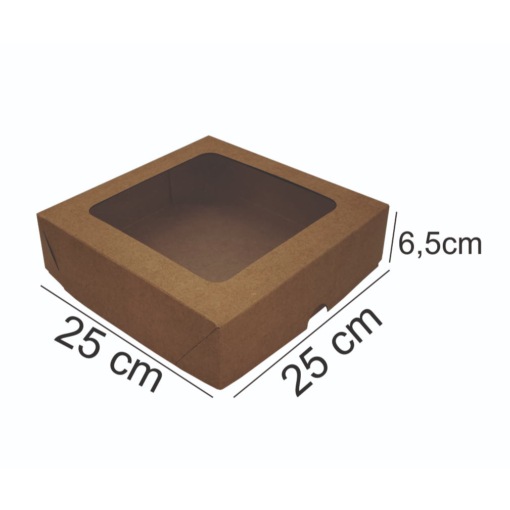 Caixa de presente com visor Caixa de presente com visor para embalar bombons, artesanatos, cosméticos, lembrancinha para aniversário, chá de bebê, casamento entre outros. Essa caixa para presente possui custo benefício ideal para ser utilizada nas mais diversas situações, agregando valor ao seu produto. Nesse anúncio é só escolher a cor e a quantidade, podendo ser, 10, 20, 30, 40 ou 50 unidades. Cores disponíveis: Branca e Kraft. -Altura: 6.5cm, Largura: 25cm, Comprimento: 25cm; -Material: Papel Kraft e Duplex As caixas de presente serão enviadas desmontadas e sua montagem é bem simples, é necessário apenas fazer as dobras no vinco, não é necessário o uso de cola.