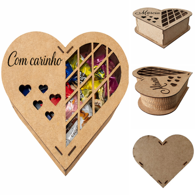 Caixas Coração MDF 13cm para Bombom Pascoa Dia Namorados Mae Final de ano Presente lembrancinha