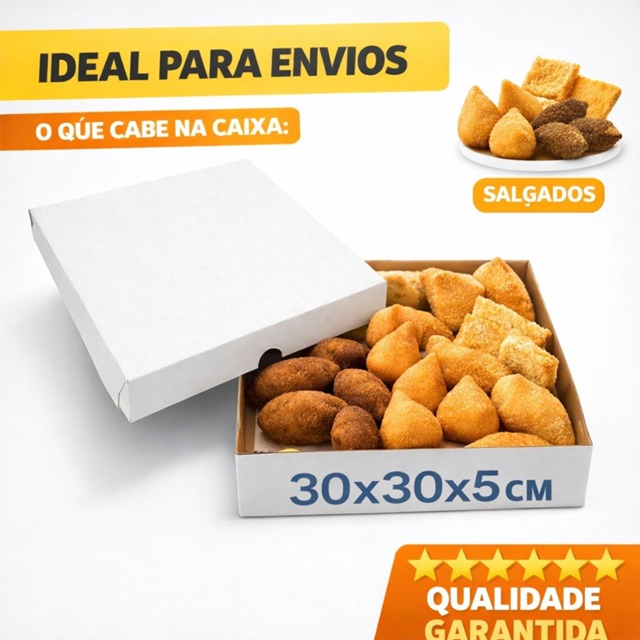 | Caixas de Papelão Premium 30x30x5 Salgados e Doces Camisetas e Elet... este produto | R$ 59,99 | — | 5.0/5 | 9 |