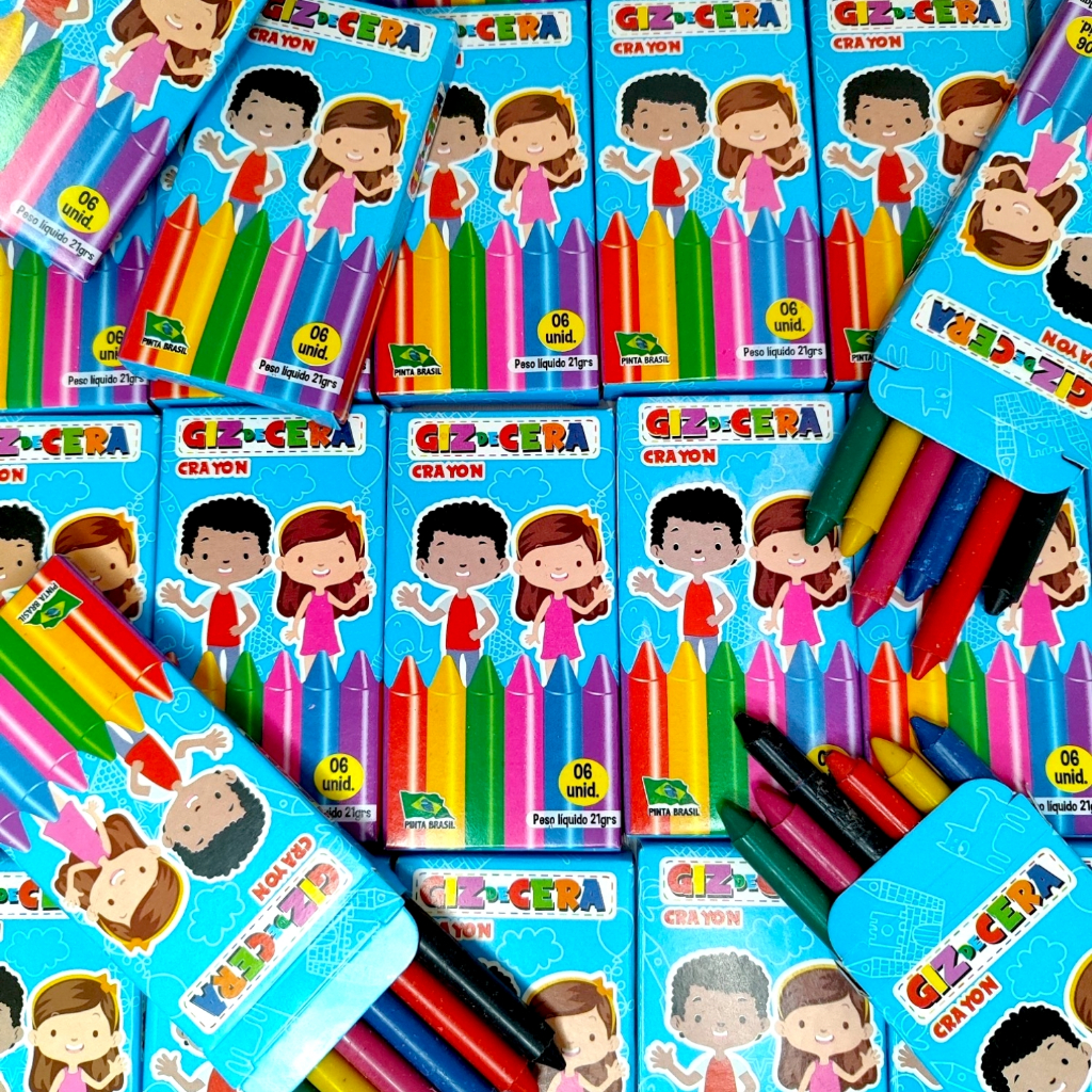 Caixas Giz De Cera 6 Cores Pinta Colorido Para Kit Festa Lembrancinha Aniversario Prenda Sacolinha