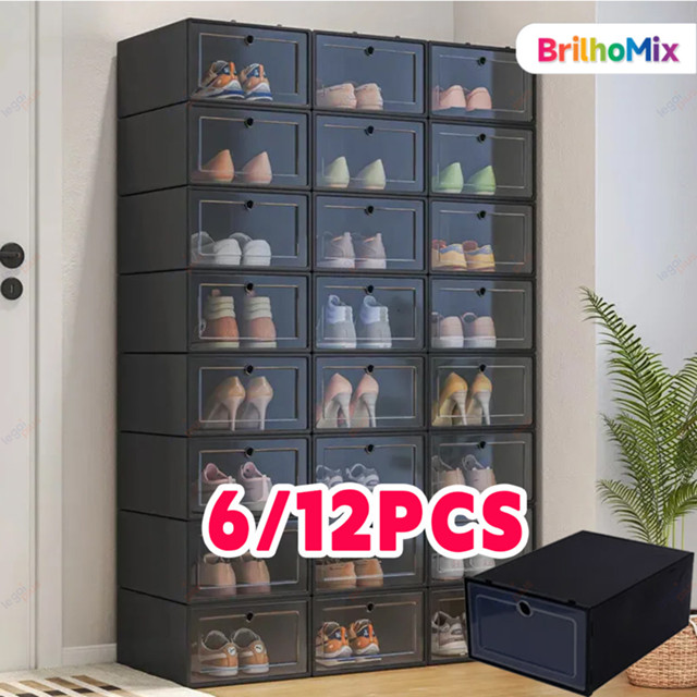 Caixas Organizadoras p/ Sapatos, Empilháveis c/ Tampa Flip – 6 ou 12 Unid
