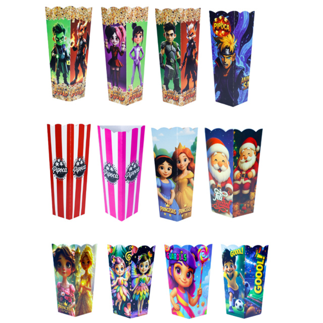 Caixinha Caixa Para Pipoca Nº04 Média Festas e eventos 50 Unidades Diversos Modelos
