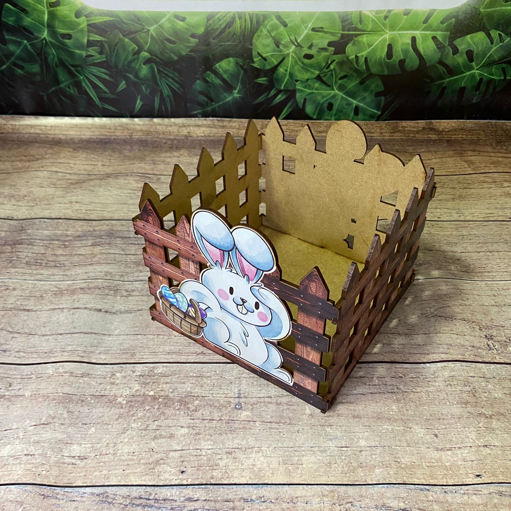 Cestinha em MDF Alta qualidade Personalizado para colocar chocolate, ovos de Páscoa e bombons MEDIDAS Altura: 12 CM Comprimento: 15Cm Largura: 15 Cm CM Aplique: 9 X 7 CM Produto vai Montado (*não Acompanha Chocolate)*