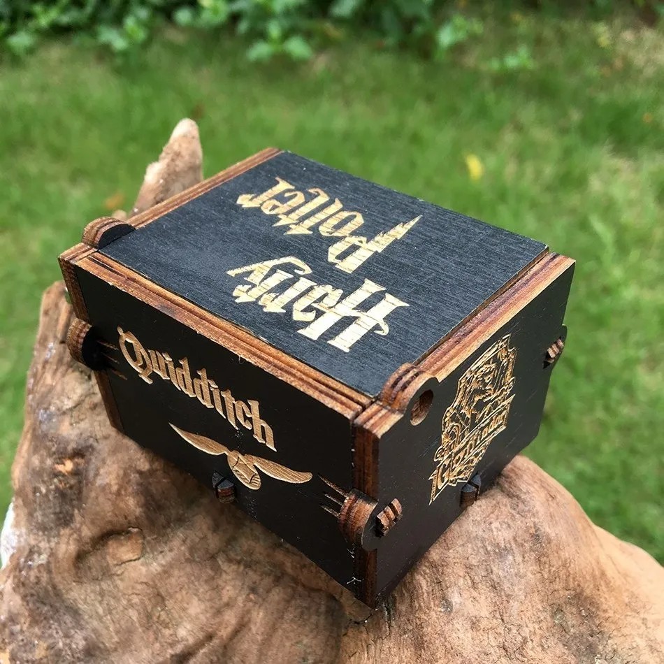 Caixinha de Música Harry Potter com a música tema do filme *** INFORMAÇÕES DO PRODUTO *** - Alimentação mecânica / manual - Não necessita de baterias - Tamanho: 6,5 de largura x 3,5 de largura x 5,0 cms de profundidade - Material de fabricação da caixa: madeira - Cor: Preta - Nova - Pronta entrega - Unissex