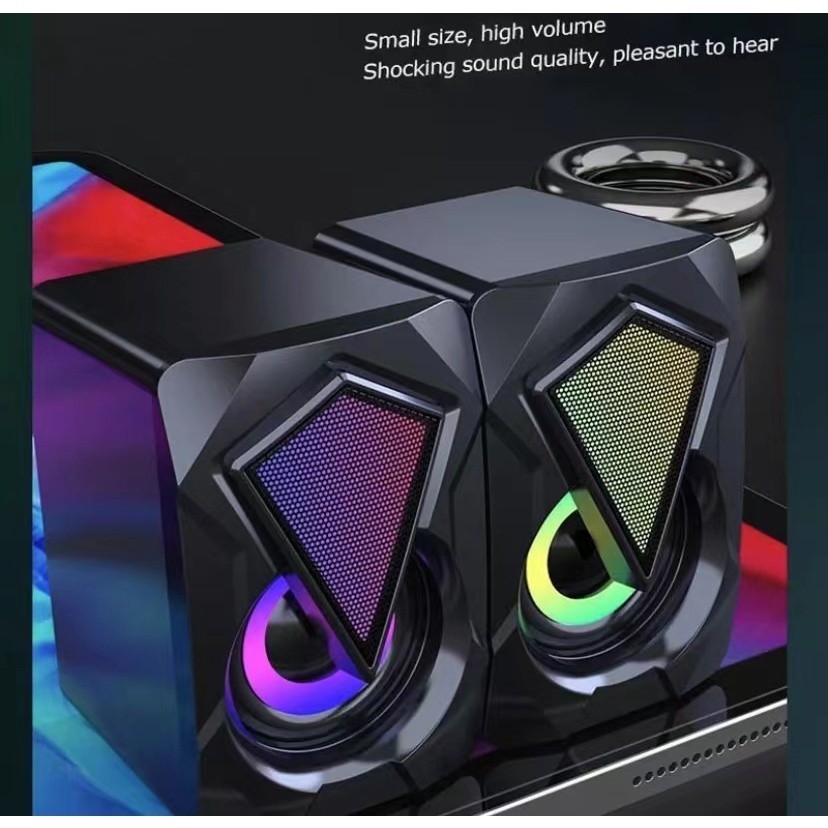 Caixa de som Gamer E005 com LED’s RGB Lighting Conecte e aproveite seus jogos no seu PC ou Notebook Aumente a potência do som em sua TV e aproveite seu Ps3, Ps4, Ps5, Xbox One, Nintedo Switch. GG! Conecte na TV e dê um UP no áudio dos seus filmes ou séries INFORMAÇÕES TÉCNICAS: • Potência: 6W RMS • Alimentação: 5Vdc (via porta USB) • Impedância: 492 Resposta de frequência: 40Hz - 18KHz Relação sinal / ruído: 85dB • Dimensões: 60 x 70 x 100 mm (C x L x A) • Comprimento dos cabos: - Cabo de áudio P2: 1,3 m - Cabo de alimentação USB: 1,40 m CARACTERÍSTICAS: • Qualidade Hi-Fi estéreo • Compatível com PC e Notebook • Controle de volume • Iluminação RGB • Ideal para músicas, filmes, jogos, etc • Conexão de áudio Mini Plugue de 3,5mm CONTEÚDO DA EMBALAGEM: 01- Caixa de som Multimídia 01- Manual de instruções