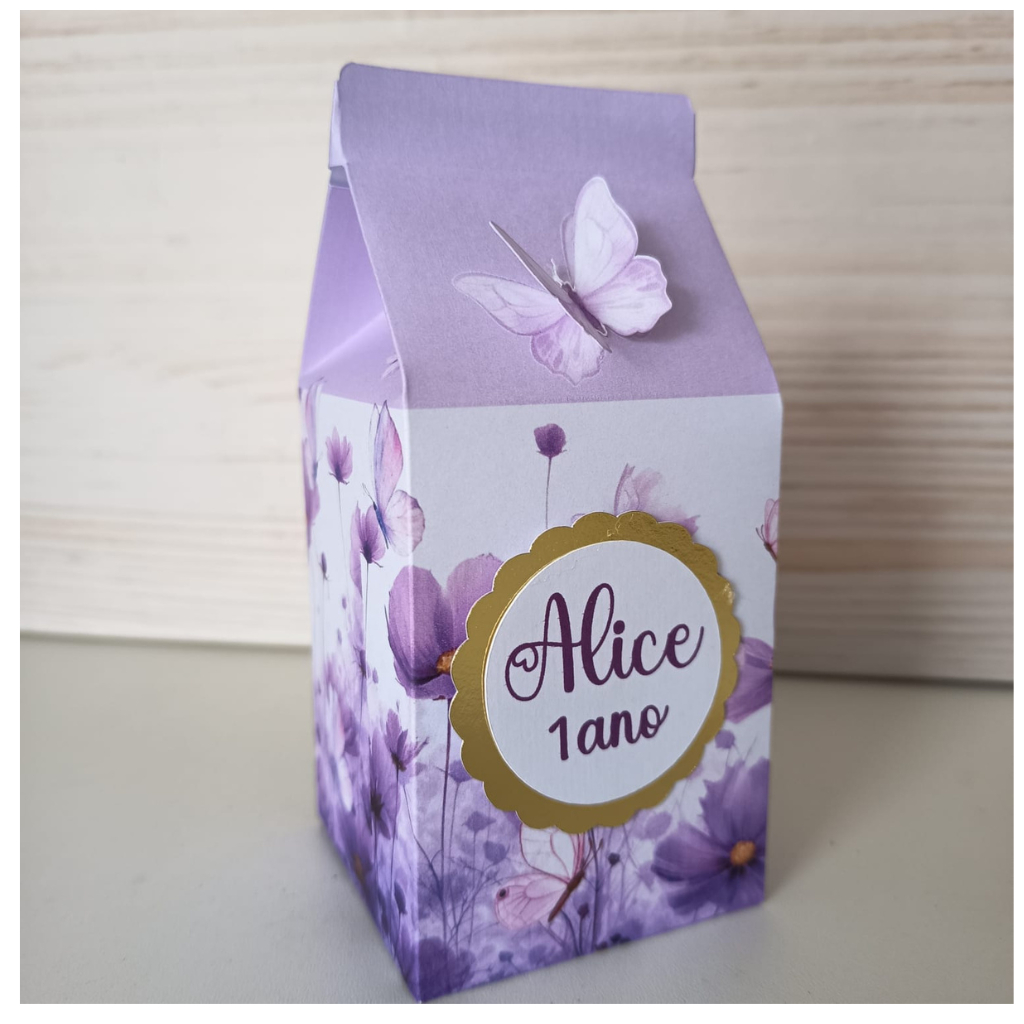 Caixinha Milk Jardim Encantado lilás para Festa Personalizada - jardim das borboletas jardi