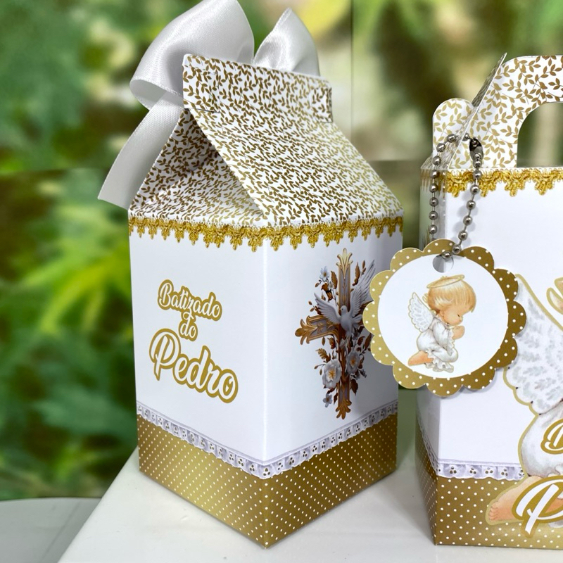 Caixinhas personalizados lembrancinhas Batizado Kit festa Batizado branco e dourado 2.0