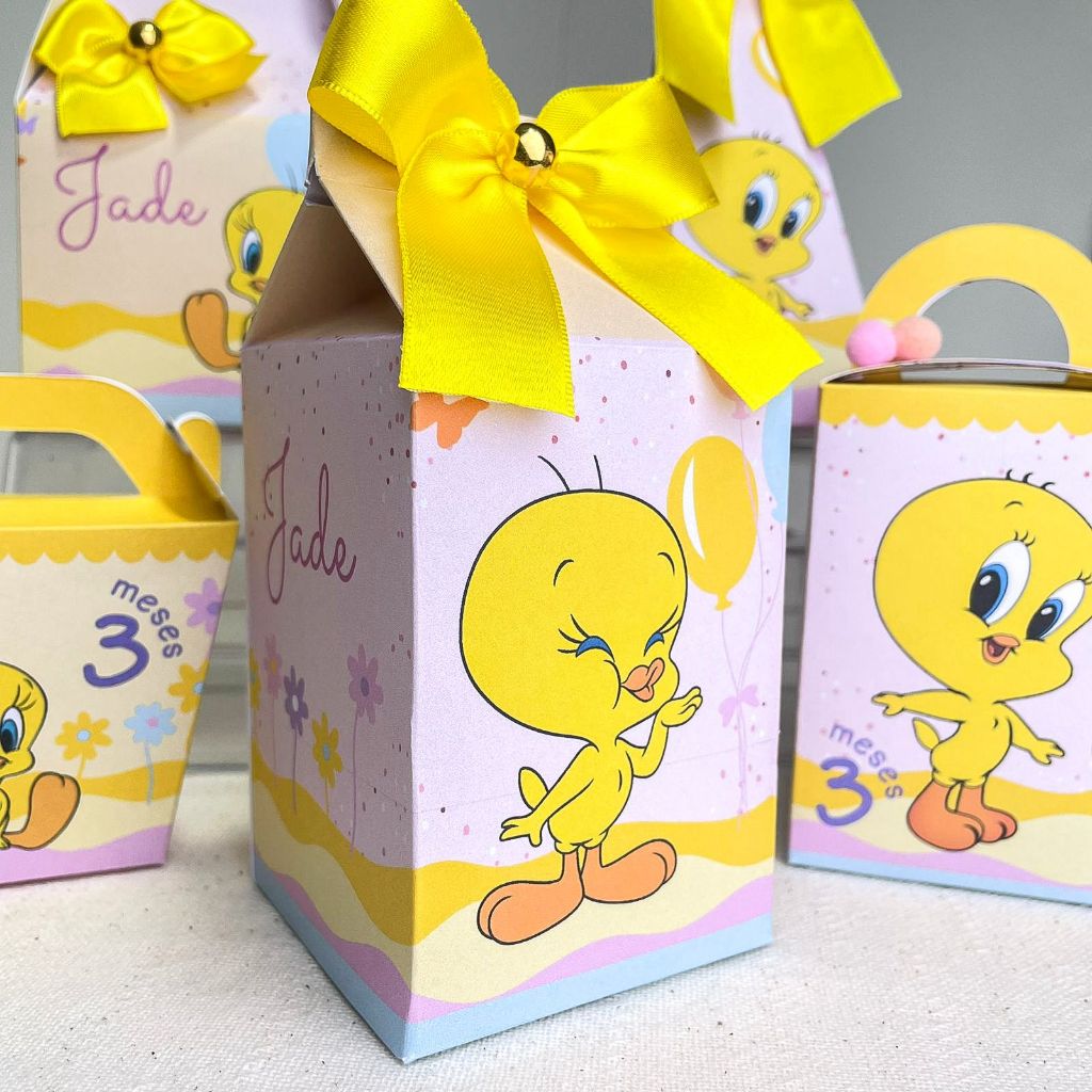 Caixinhas PiuPiu Baby Looney Tunes personalizadas aniversário festa infantil lembrancinha caixinha milk cone mesversario