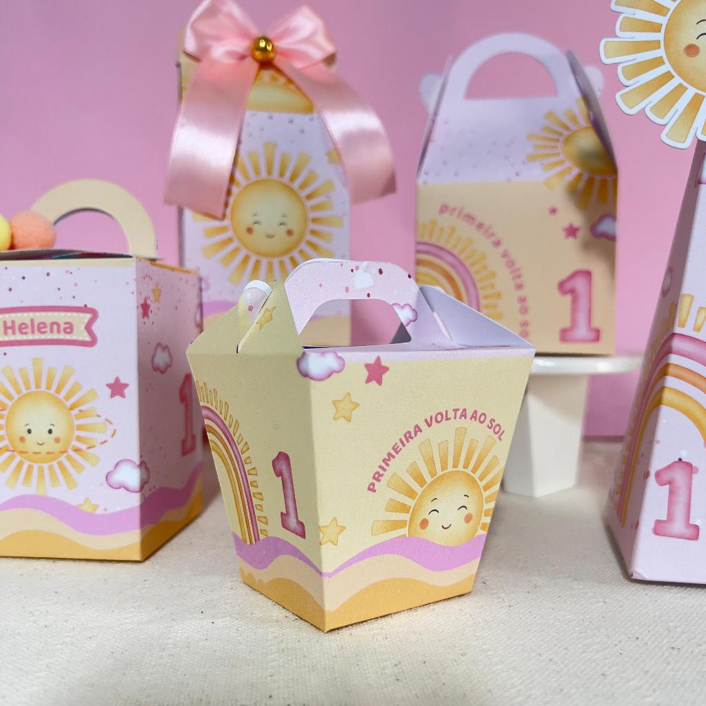 Caixinhas primeira volta ao sol personalizadas aniversário festa infantil lembrancinha caixinha milk cone pegue e monte