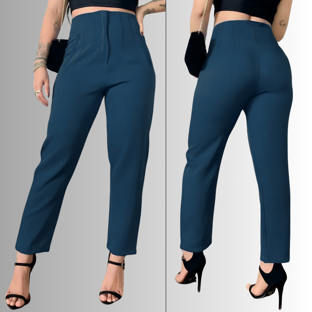 Calça Alfaiataria Feminina Cintura Alta Plus Size PP ao G3 com Bolsos, Elastano e Envio Imediato