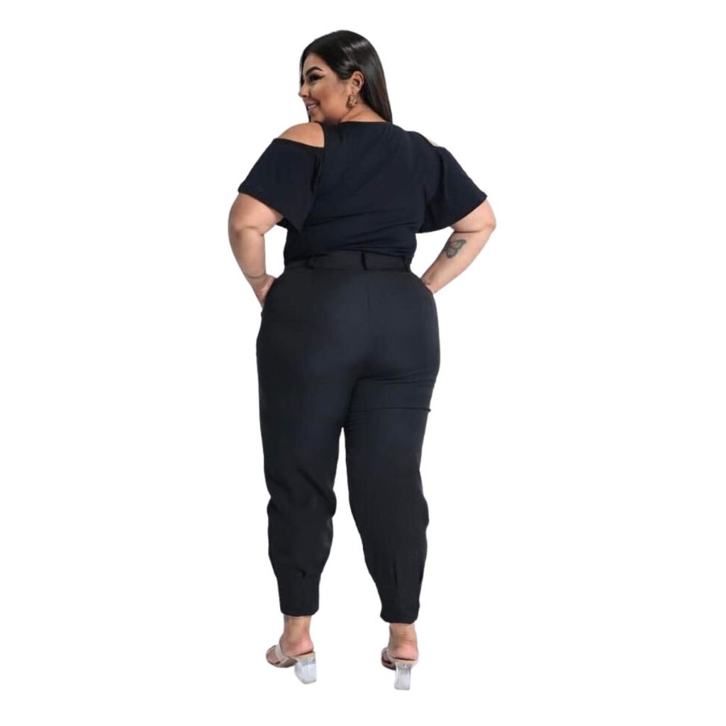 Calça Alfaiataria Feminina Modelo Cenoura Plus Size Moda Estilo Casual Básico Elegante