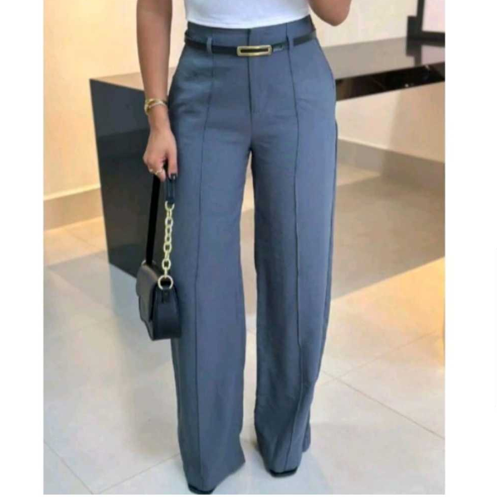 Calça Alfaiataria Pantalona Feminina Cintura Alta Elegante Com Cinto. (Cinto incluso)