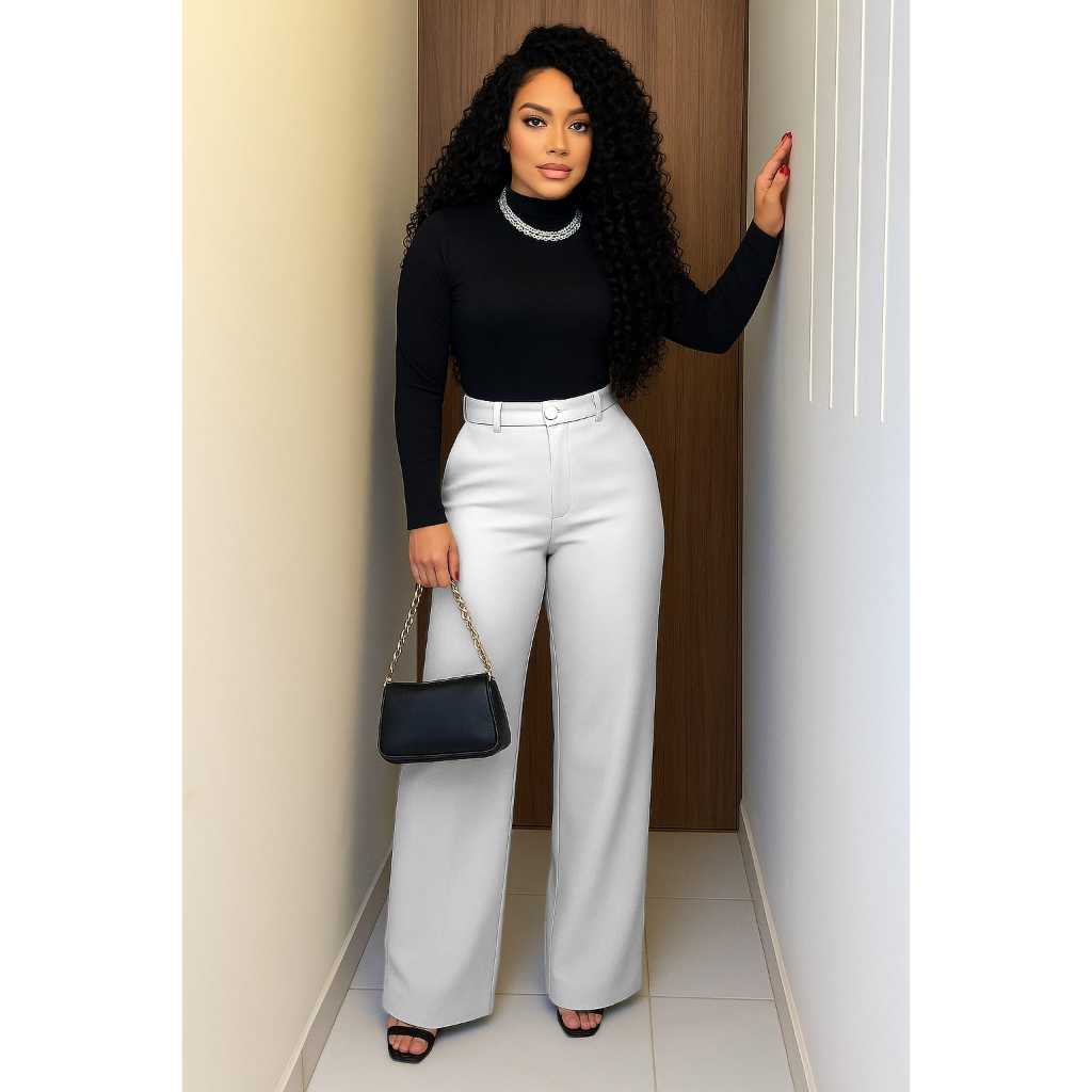 Calça Pantalona Feminina Alfaiataria – Elegância e Conforto ✨ Estilo sofisticado para o seu dia a dia! Calça pantalona de alfaiataria com modelagem ampla e caimento impecável. Possui fechamento frontal com botão e zíper, além de bolsos laterais funcionais. A cintura é estruturada, sem elástico, garantindo um visual mais alinhado e elegante. Ideal para compor looks formais ou casuais com muito charme. 📌 Detalhes do produto: Tecido: Alfaiataria (sem elasticidade) Fechamento: Botão e zíper frontal Bolsos: Laterais funcionais Cintura: Alta e sem elástico Modelagem: Pantalona, pernas largas Composição: 95% poliester 5% Elastano 🛍️ Combine com camisas, blusas ou croppeds e arrase em qualquer ocasião