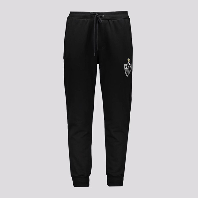 Composição: 50% Algodão e 50% PoliésterAjuste: Elástico e cordão externoCor predominante: PretoBolsos: Dois frontais, com zíperClube: Atlético MineiroOrigem: NacionalEscudo: BordadoGênero: MasculinoForro: FlaneladoDimensões aproximadas (A x L):P: 97 x 38 cmM: 99 x 40 cmG: 101 x 42 cmGG: 103 x 44 cm