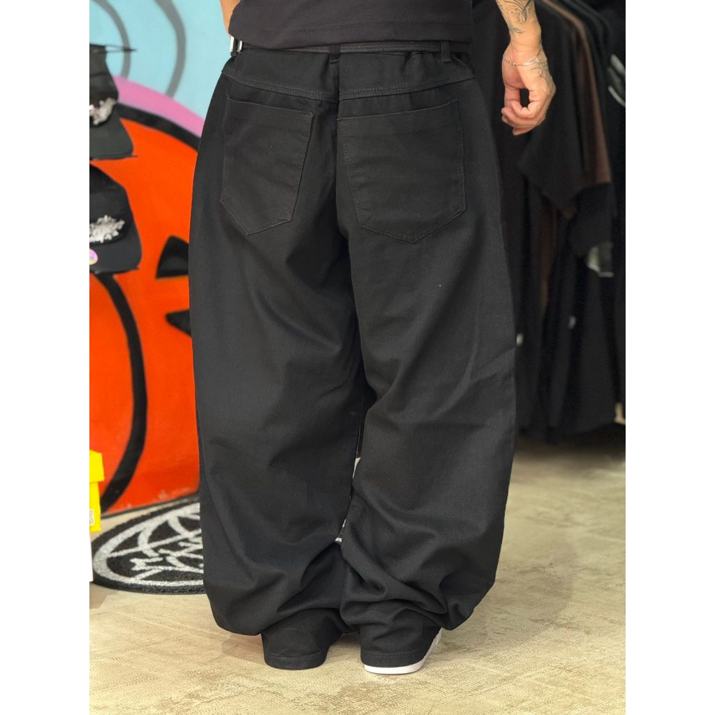 Calça Baggy Jeans larga Preta Escrita Balão Hip Hop Street Skate novidade lançamento promoção