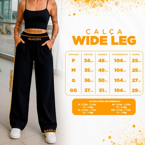 Calça Feminina Moletom Flanelada Pantalona Esta calça de moletom é feita de algodão macio e quentinho, perfeito para dias frios. Com um estilo pantalona, ela apresenta um cós alto que ajuda a segurar a barriga, proporcionando conforto e suporte. Ideal para relaxar em casa ou para criar um visual casual, confortável e elegante. INFORMAÇÕES SOBRE PRODUTO: TECIDO: MOLETOM Tabela de medidas: *Referente a circunferência da peça. P : Cintura: 34-68cm/ Comprimento: 103 cm/Quadril 48-96cm M : Cintura: 35-70cm/ Comprimento: 103 cm/Quadril 49-98cm G : Cintura: 36-74cm/ Comprimento: 104 cm /Quadril 50-101cm GG: Cintura: 37-80cm/ Comprimento: 105cm /Quadril: 52-104cm