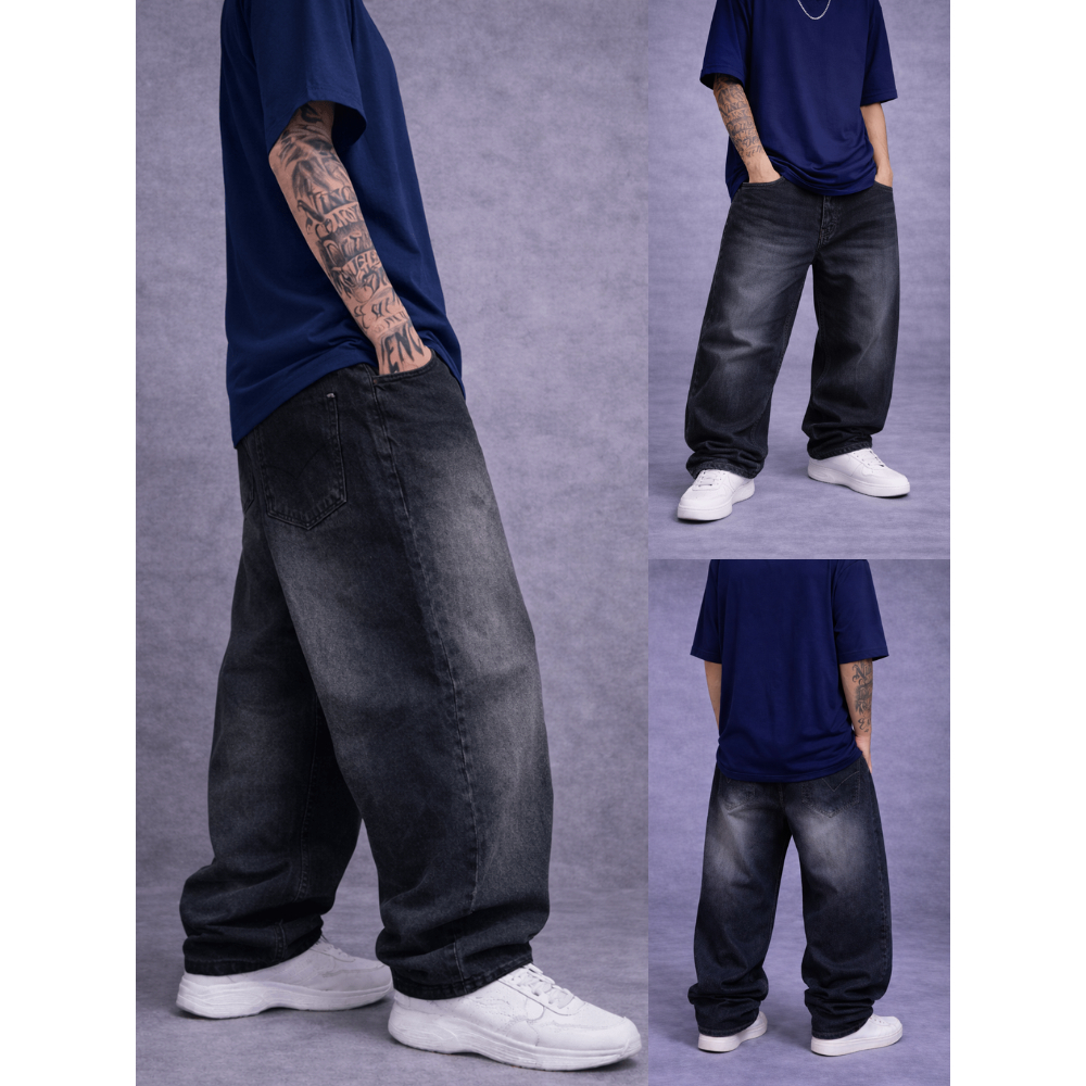 Calça balão baggy jeans super premium original reta boca larga masculina plus size várias cores streetwear dazzling