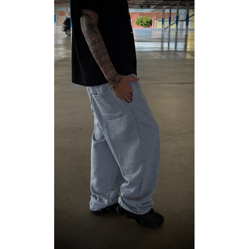 Calça Balao/Baggy Moletom CINZA Barra Ajustável Larga Diferenciada Sportlife