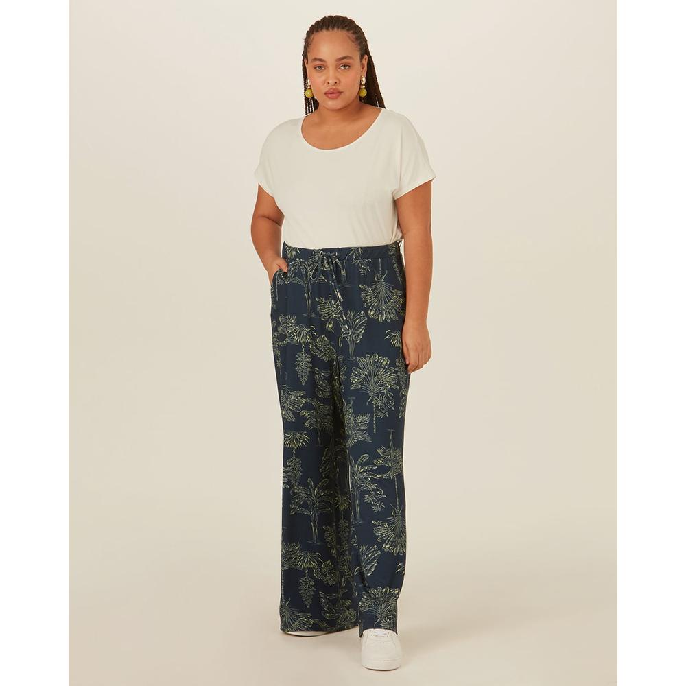 Calça confeccionada em moletinho de viscose. Super moderna e atual, a calça Wide Leg estampada apresenta pernas mais amplas que descem aumentando levemente até a barra e sendo super confortável no vestir. Ela ainda conta com cintura alta, cós de elático com cadarço para melhor ajuste e bolsos laterais ao estilo faca. Além disso, o tecido de moletinho de viscose conta com as características da viscose, sendo um tecido leve com bom caimento e frescor. A calça que é a cara da estação. Invista com blusa Malwee Plus e sandália rasteira! Calça Wide Leg em Moletinho de Viscose Cintura Alta Cós Em Elástico com Cadarço Bolsos Laterais Situação de Uso: Casual e Dia a Dia.