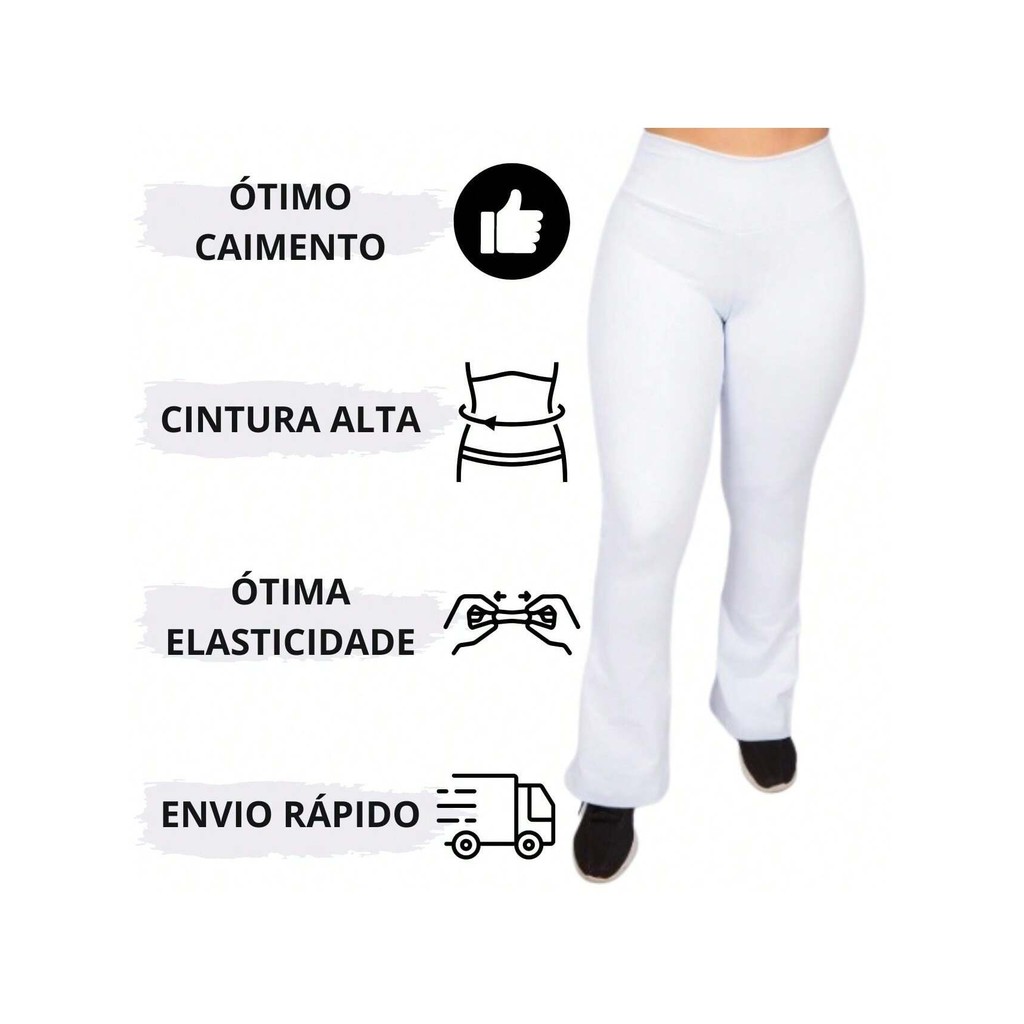 Calça Boca de sino Branca, FLARE,Cintura Alta, Feminina, CAPOEIRA, Academia, Enfermagem