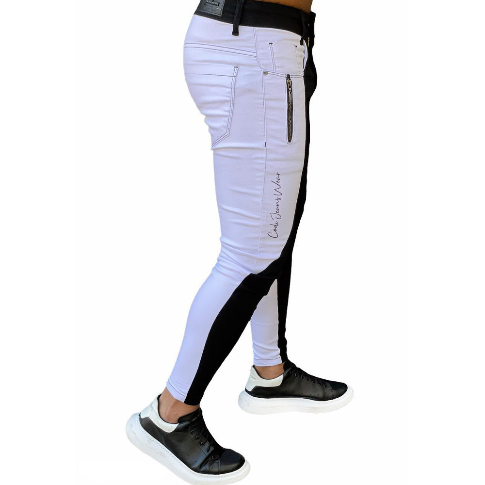 Calça Branca E Preta Bicolor Skinny Masculina Detalhe Barra Streetwear Super Skinny Codi
