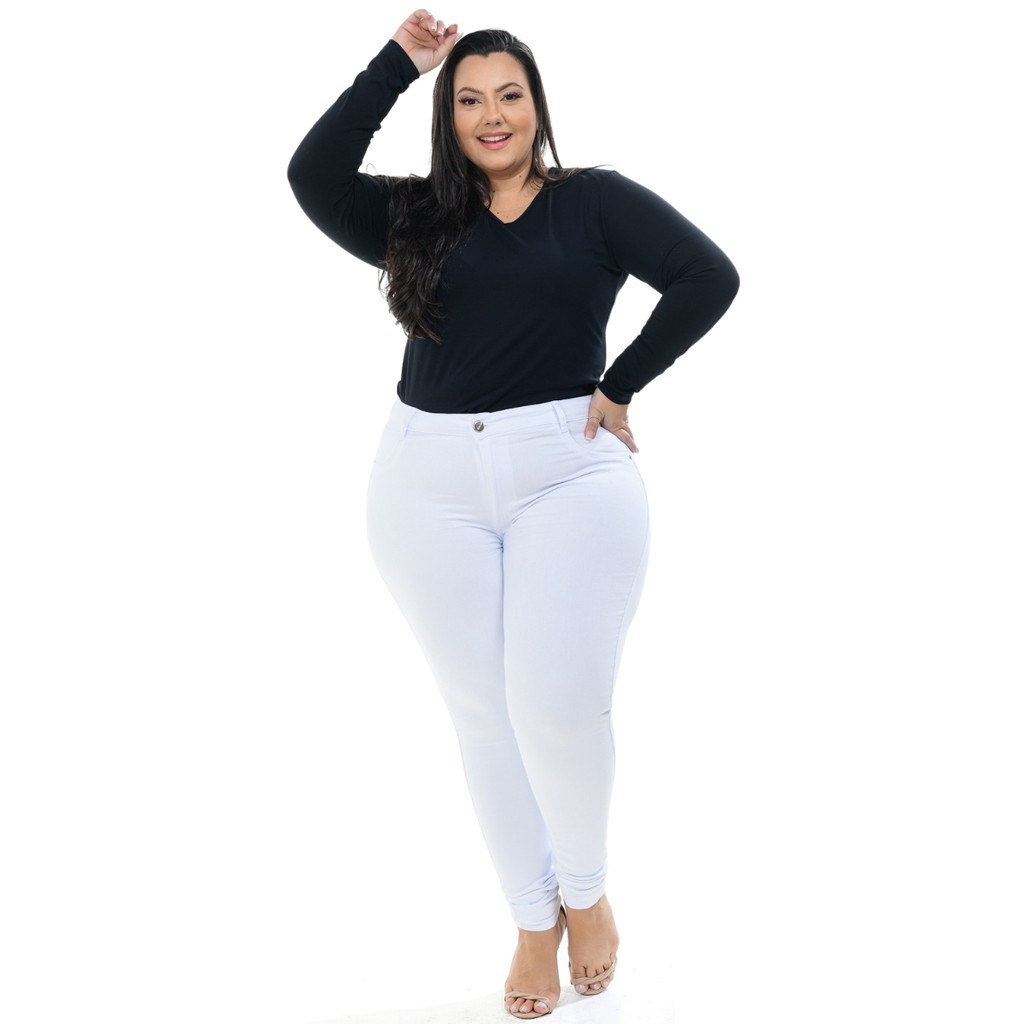 Calca Branca jeans Premium Plus Size Cintura Alta com elastano