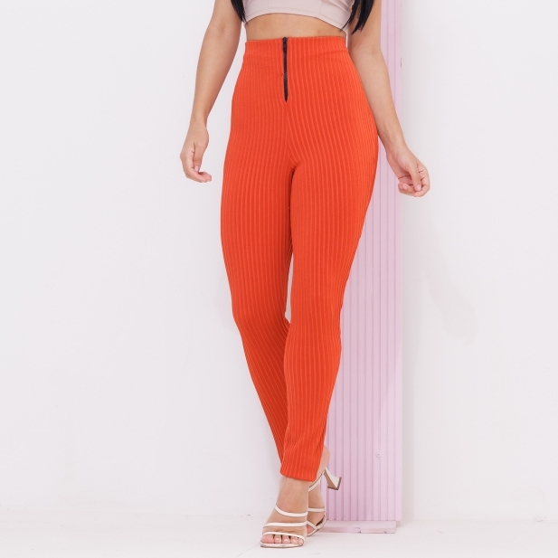 Calça Canelada 3 D alto Relevo Montaria Feminina Cintura Alta com Ziper Skinny possui Elastano Slim