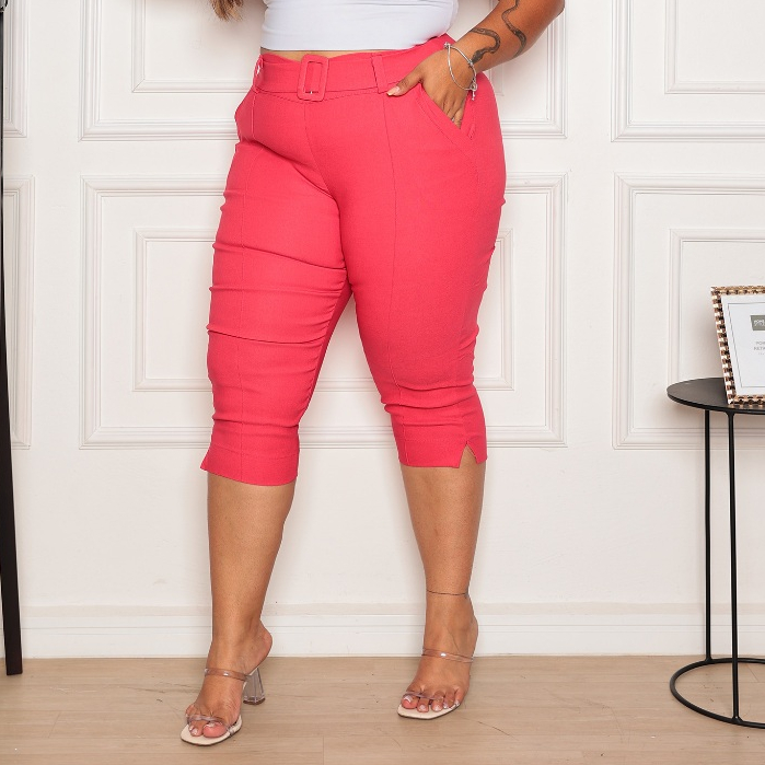 Calça Capri Feminina Cintura Alta Detalhe Risca Plus Size Zero Transparência Bengaline
