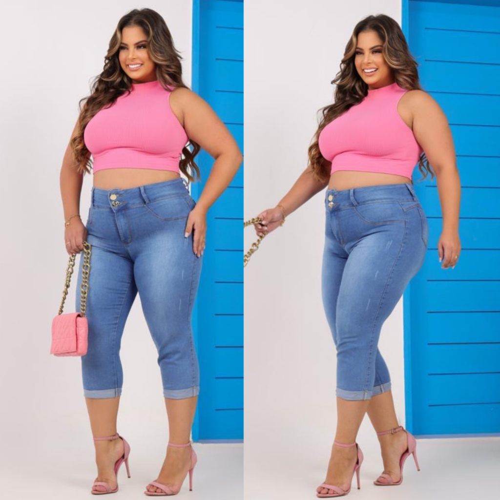 Calça Capri feminina Jeans Plus Size Cintura Alta com Elastano ( Lycra) Tamanhos Grandes