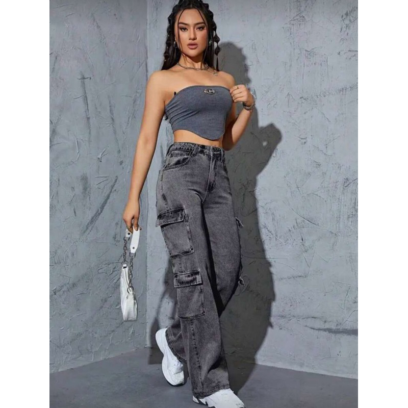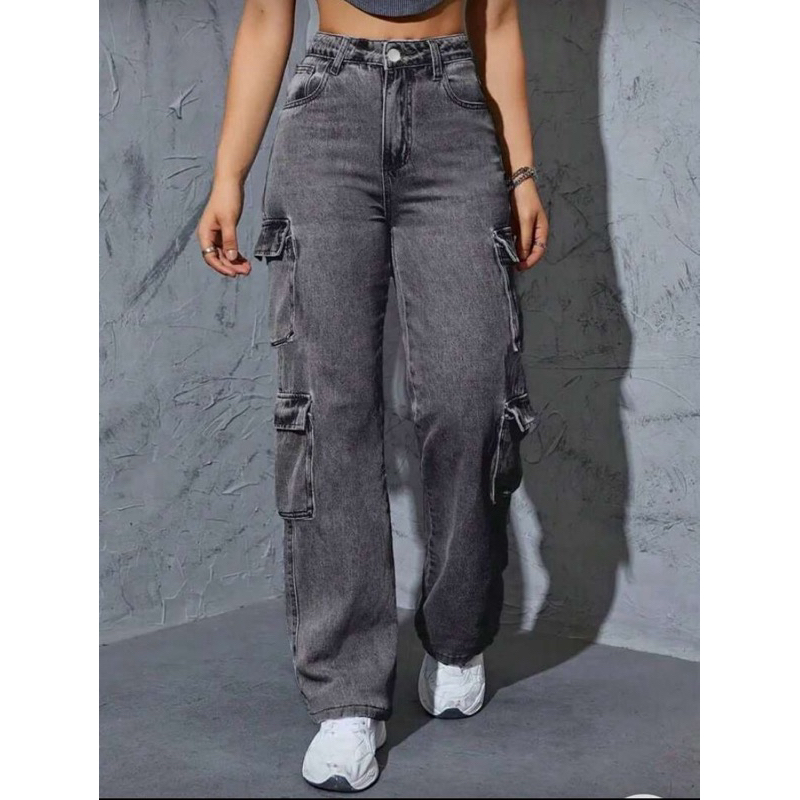 calça Feminina Grafite Com 4 bolsos 2 bolsos Cargo de cada lado cor Jeans Grifite 100% jeans nao tem Laycra 34 ao 44