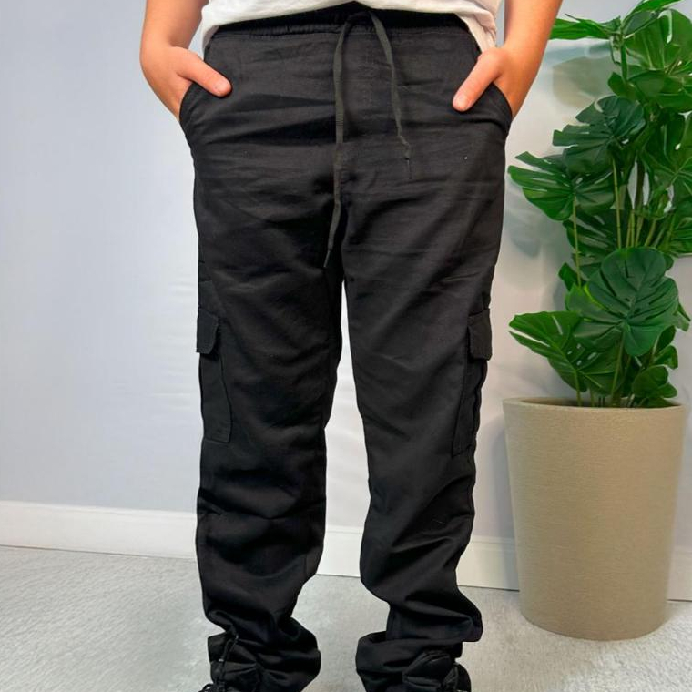 CALÇA CARGO INFANTIL JUVENIL MENINOS E MENINAS ELASTICO E CORDAO DO 10 AO 16 UNISSEX