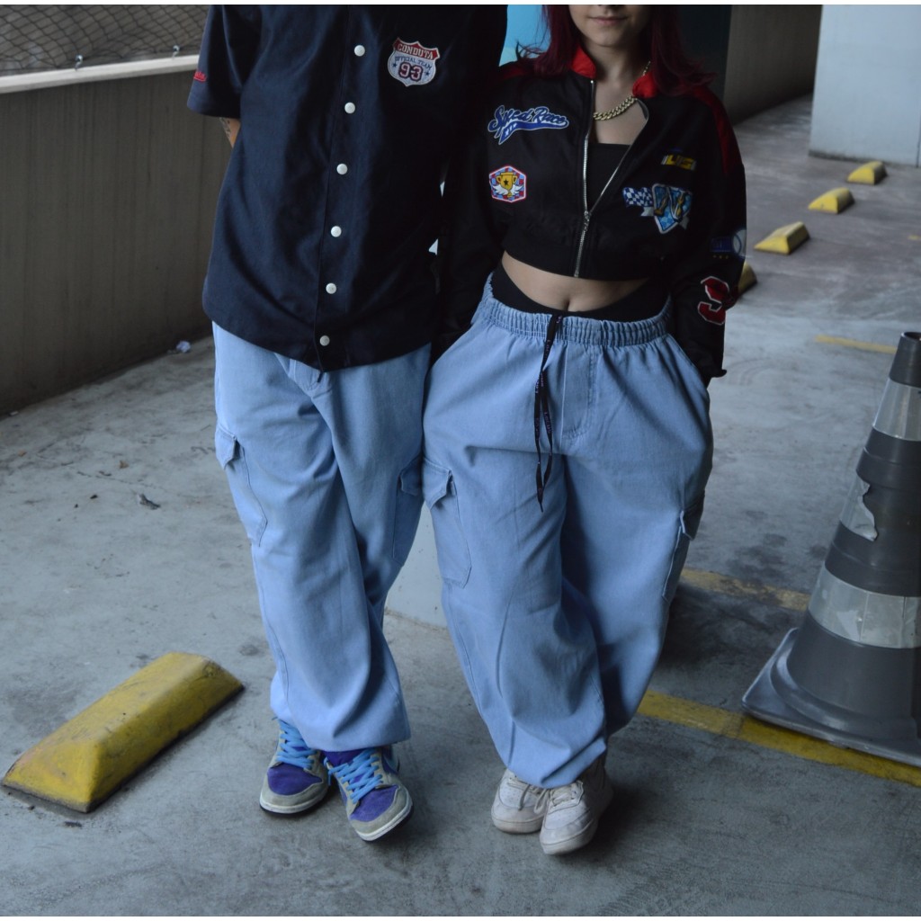 Calça Cargo Jeans Larga Bolsos Lateral Skatista Streatwear 5 Bolsos