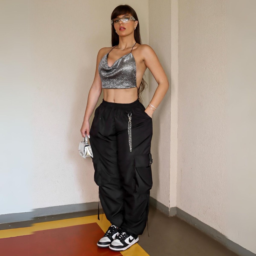 Calça Cargo Jogger C/Corrente e Bolsos Laterais Streetstyle