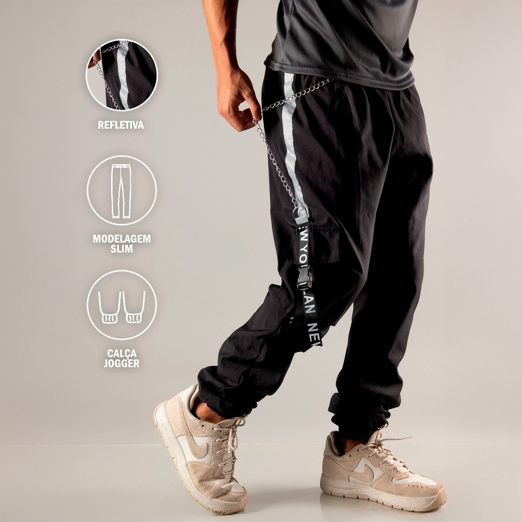 Calça Cargo Jogger Com Punho Estilo Gringa Com Elastico e Cordão Estilosa Coreana Rapper Trapper