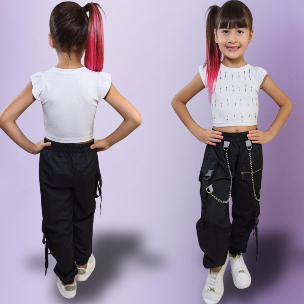 CALÇA CARGO JOGGER PARA MENINA MUITO ESTILOSA 2025 DUAS CORRENTES ZIPPER E BOLSOS