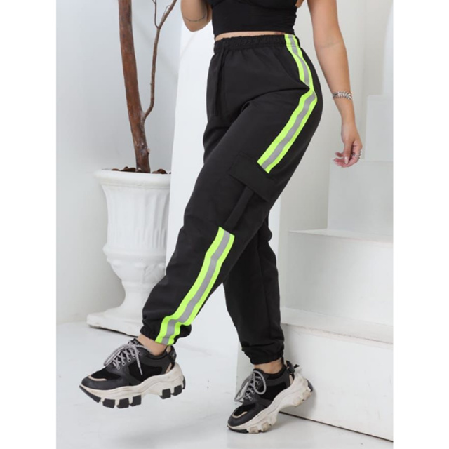 Calça Cargo Jogger PREMIUM VICTORIA FEMININA com FAIXAS LATERAIS REFLETIVAS TACTEL