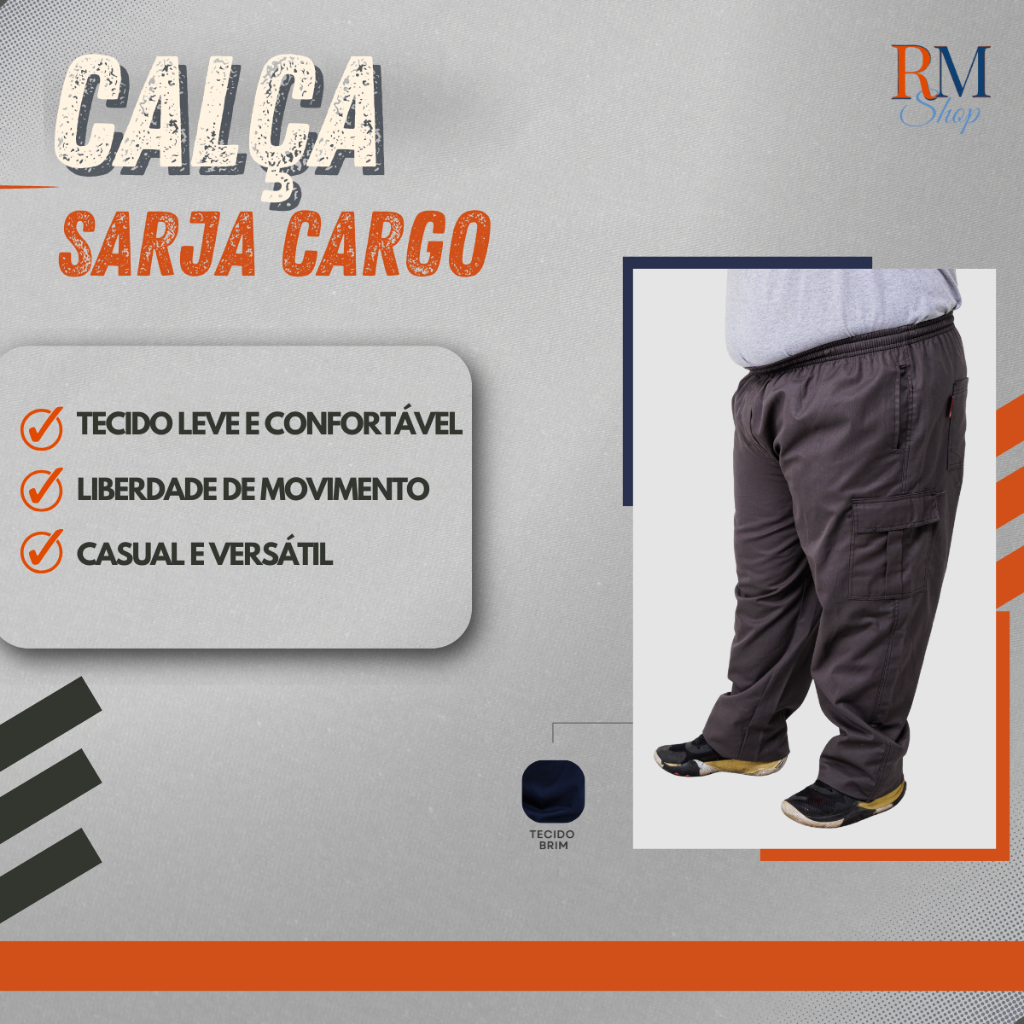 | Calça Cargo Masculina Brim Plus Size Sarja Premium 5 Bolsos este produto | R$ 103,90 | 5% | 4.9/5 | 5 |