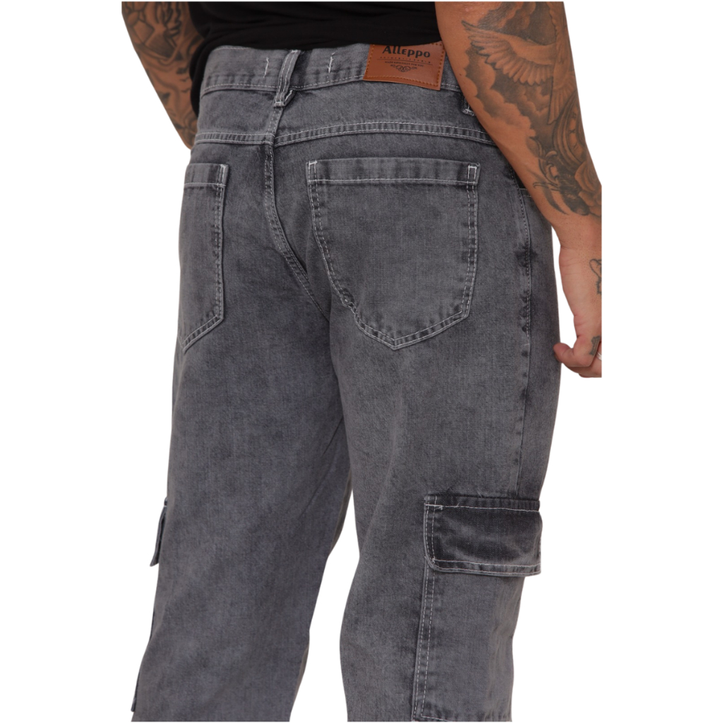 Calça Cargo Masculina Cinza Grafite Manchado