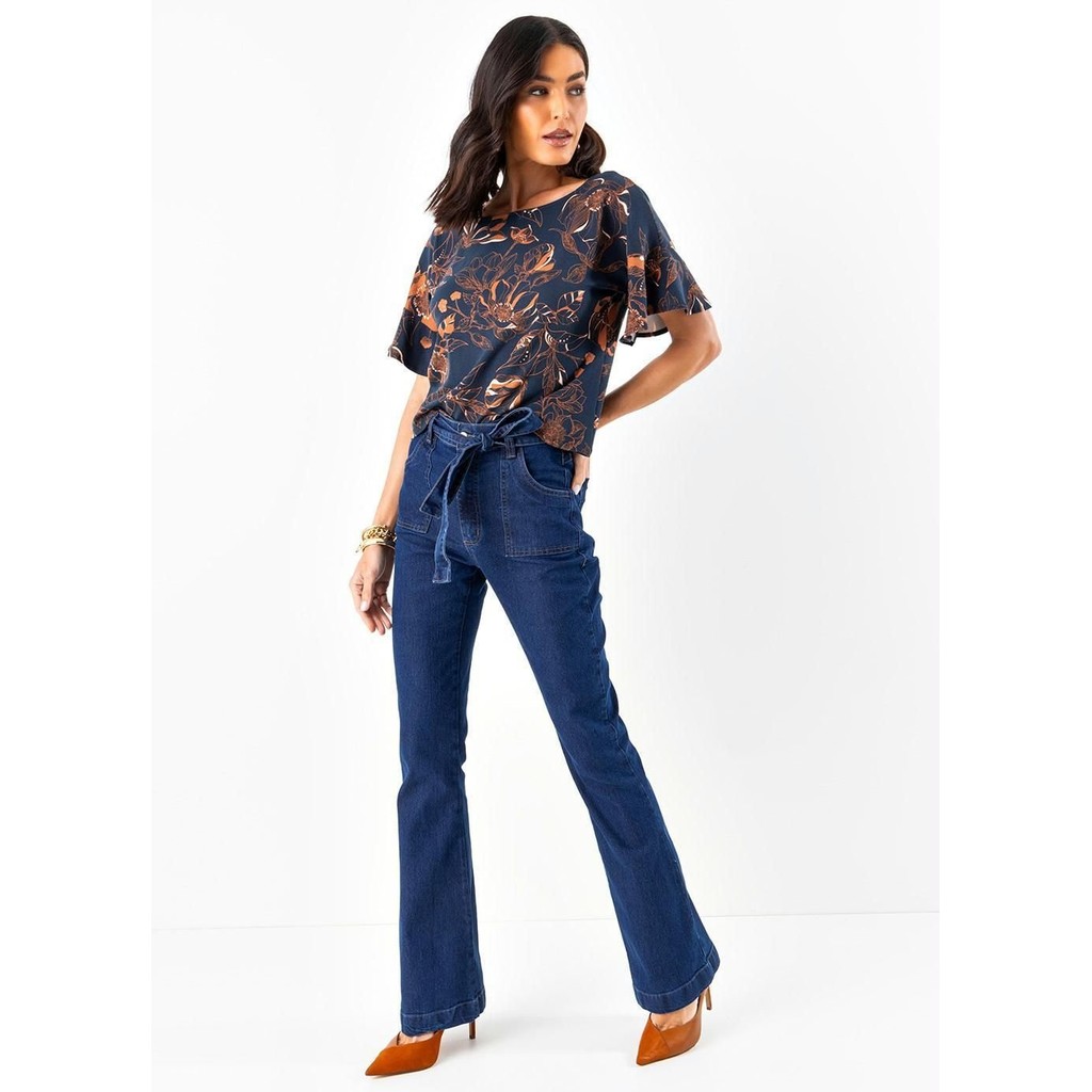 Calça jeans de algodão com elastano e fibras sintéticas. Bolsos funcionais frente e costas e barra com bainha larga. Cintura média. Garantia: • 7 dias de garantia