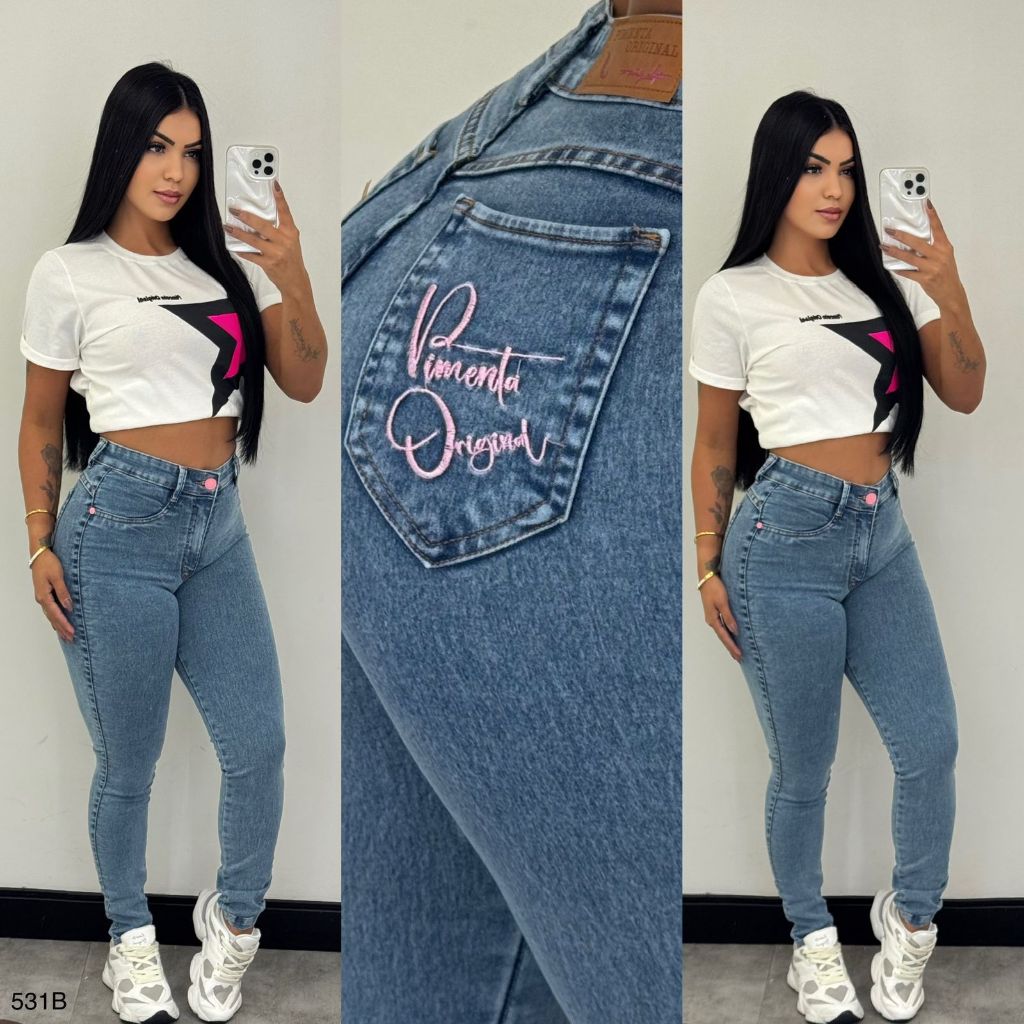 Calça com lycra Jeans Feminina Sal E Pimenta Qualidade Básica E Premium Pimenta Doce Original