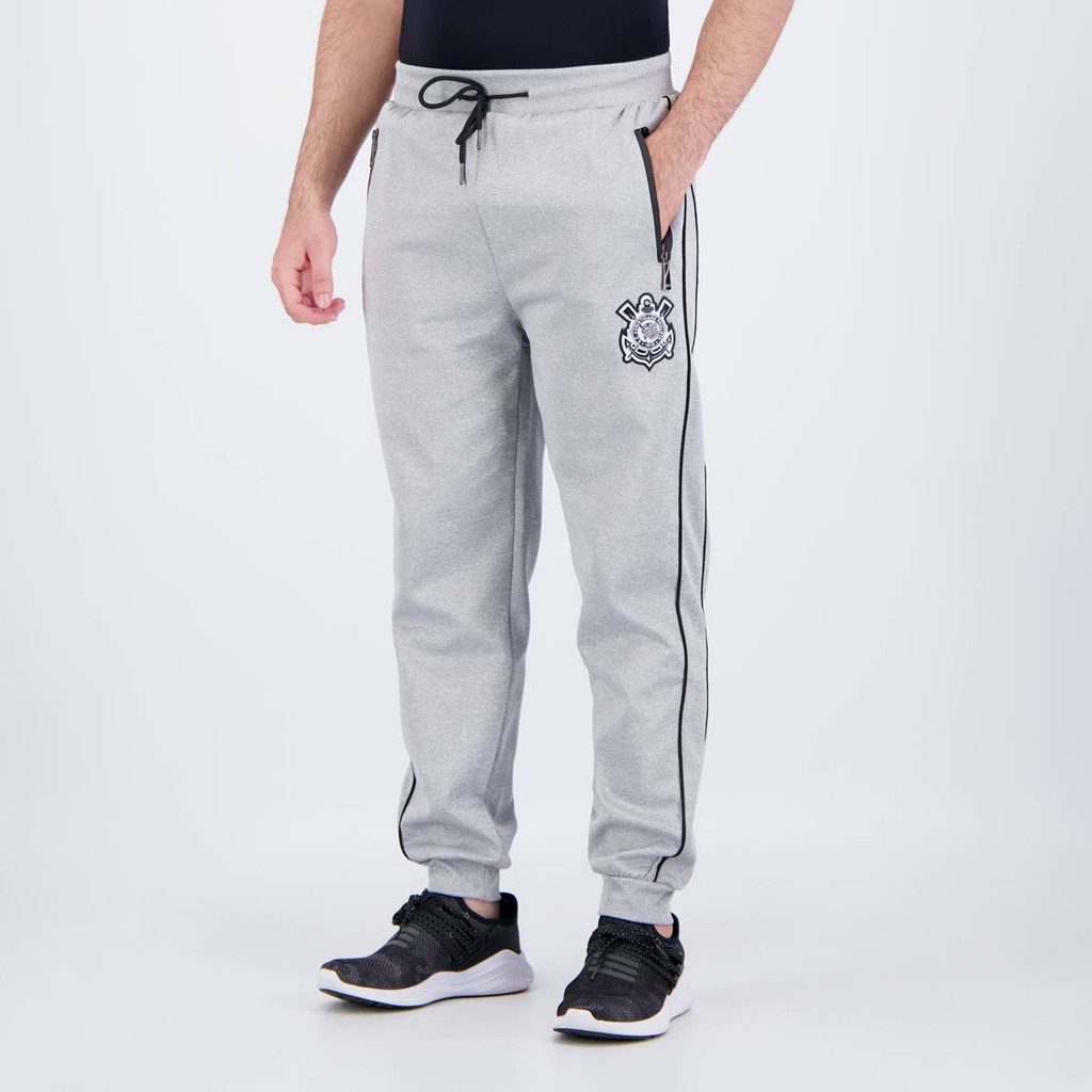 Composição: 95% Poliéster e 05% ElastanoCor predominante: Cinza mesclaAjuste: Elástico e cordãoIndicada para: CasualBolsos: Dois frontais (com zíper) e um traseiro (sem zíper)Gênero: MasculinoClube: CorinthiansOrigem: ImportadaEscudo: BordadoDimensões aproximadas (A x L):P: 95 x 35 cmM: 97 x 37 cmG: 99 x 39 cmGG: 101 x 41 cmEG: 103 x 43 cm