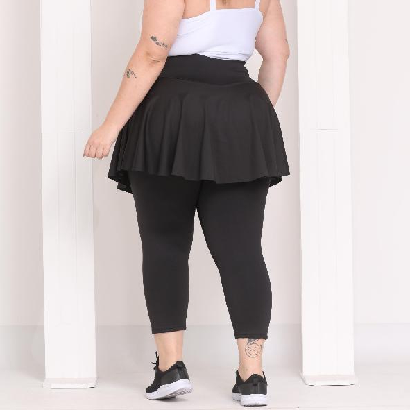 Calça Corsario Plus Size Com Saia Babado Suplex Feminina Cintura Alta