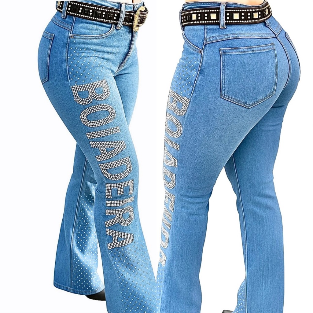 Calça Country Flare Jeans Feminina Rodeio de Luxo Boiadeira Cintura Alta Modela Bumbum