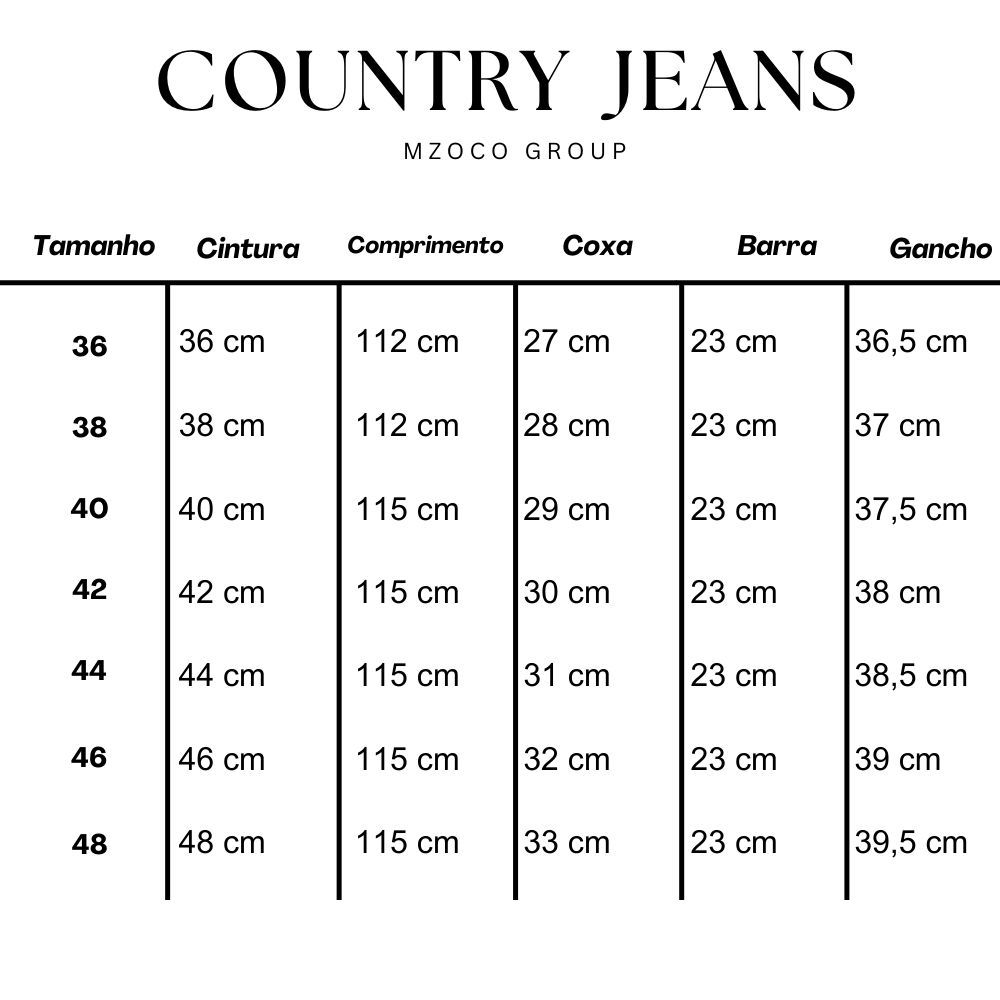 Calça Country Masculina Rodeio PRETA Tradicional com Elastano "MINIMOS DEFEITOS" _________________________________________ FRETE GRATIS acima de 2 Peças Envio imediato - Enviamos no Ato da compra _________________________________________ Descubra a autêntica elegância country com as nossas calças premium! Projetadas para combinar o charme rústico com o máximo conforto, nossas calças country são perfeitas para os aventureiros da moda que buscam um visual único e atemporal para todos os eventos, festas de rodeio, montaria. **Principais Características:** - **Marca:** Mzoco Jeans - **Modelo:* Country - **Gênero:** Masculino - **Material Principal:** Denim Elastano Lycra Algodão - **Tipo de Cintura:** Cintura média - **Corte da Calça:** Country Tradicional Reto - **Quantidade de Passantes:** 5 - **É Rasgada:** Não - **Com Bordado:** Não - **Com Bolsos:** Sim, Bolsos fundos para uso de carteira e celular. - **É Adequada para Passar a Ferro:** Sim, e não desbota com a lavagem - Medidas: - Tamanho 36: Cintura 74 cm, Comprimento 112 cm Barra 21 cm - Tamanho 38: Cintura 78 cm, Comprimento 112 cm Barra 21 cm - Tamanho 40: Cintura 82 cm, Comprimento 115 cm Barra 23cm - Tamanho 42: Cintura 86 cm, Comprimento 115 cm Barra 23cm - Tamanho 44: Cintura 88 cm, Comprimento 115 cm Barra 23cm - Tamanho 46: Cintura 92 cm, Comprimento 115 cm Barra 23cm - Tamanho 48: Cintura 96 cm, Comprimento 115 cm Barra 23cm 1. **Tecido Durável:** Feitas com materiais de alta qualidade e super resistente, nossas calças resistem aos desafios do dia a dia, não desbota, não rasga, garantindo durabilidade a longo prazo. 2. **Ajuste Confortável:** O corte ergonômico oferece liberdade de movimento, permitindo que você aproveite suas atividades ao máximo, para montaria em cavalos e touros. 3. **Design Autêntico:** Detalhes cuidadosamente trabalhados capturam a essência do estilo country, garantindo um visual genuíno e cativante. **Por que Escolher Nossas Calças Country?** - **Perfeitas para Montaria:** Seja nas pistas ou nas trilhas, nossas calças oferecem o equilíbrio perfeito entre moda e funcionalidade. - **Estilo Versátil:** Combine com botas, Texana, chapéus e acessórios para criar looks deslumbrantes, do rodeio à festa country. - **Qualidade Garantida:** Nossa missão é fornecer produtos excepcionais que excedam suas expectativas. Garanta já a sua calça country premium e experimente o melhor da moda country! Não perca essa oportunidade de elevar seu estilo. Encomende agora e junte-se à comunidade dos apaixonados pelo estilo country! **Cores Disponíveis:** - Delavê (Azul Claro) - Stone (Azul Marinho) - Amaciado (Azul Escuro) **Perguntas Frequentes:** 1. **Emite NF?** - Sim, todos os produtos são enviados com Nota Fiscal. 2. **Tem Elastano ou Lycra?** - Sim, o tecido possui elastano com composição de 2% de Elastano. 3. **Quais as Medidas da Calça?** - A tabela de medidas está na última foto do Anúncio e no Guia de Tamanhos. **FIQUE À VONTADE PARA RETIRAR SUAS DÚVIDAS, RESPONDEREMOS A TODOS.** **SE O PRODUTO NÃO FOR COMO VOCÊ ESPERA, TERÁ 7 DIAS PARA TROCA.** Calça country masculina Calça masculina estilo country Calça masculina para rodeio Jeans country masculino Calça cowboy masculina Calça country com elastano masculina Calça masculina resistente para campo Calça preta country masculina Melhores calças country para homens